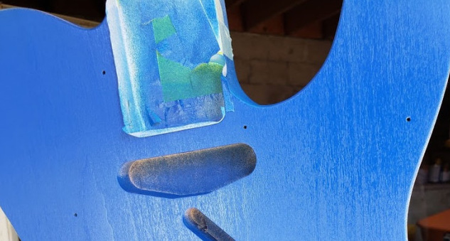 The picture is from when I had just applied the second coat of paint, and before I sanded it the first time. I settled on this color after spending weeks messing around with color options in photo editing programs. I put the pieces of the guitar that I had together (without fastening), and then I took a picture. I changed the color in this picture dozens of times.
