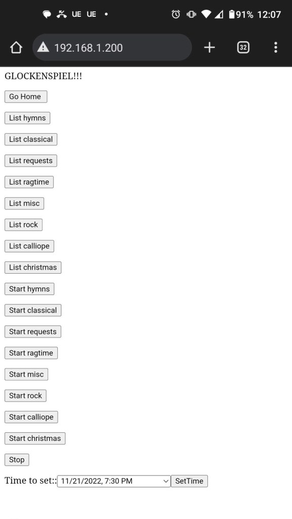 The first “game” simply runs through the traffic light pattern in order. The second game I wrote is an actual game. The hand controller (a cheap Android phone) had 3 buttons, one for each color of the traffic light. This was used to play “Simon” with the light, where you had to echo back the pattern that it made. I had plans to add a second controller and make a quiz-style buzz-in for use in games with kids, but we “shipped” before I did so.